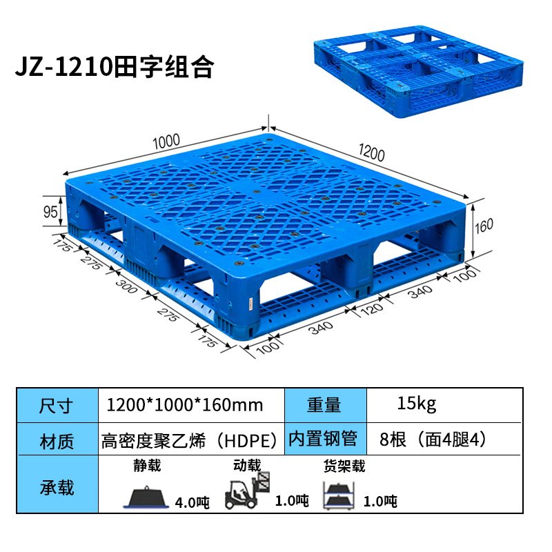1210田字組合款塑料托盤,可上立體庫(kù)貨架,內(nèi)置芯片槽設(shè)計(jì)