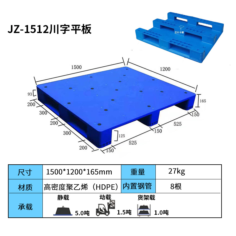尺寸:1500*1200mm川字平板塑料托盤川字平板塑料托盤因其承載能力強(qiáng)、穩(wěn)定性好,被廣泛應(yīng)用于倉(cāng)儲(chǔ)和物流行業(yè)中,用于存儲(chǔ)和運(yùn)輸各種貨物。其標(biāo)準(zhǔn)化設(shè)計(jì)使得托盤能夠方便地堆疊和搬運(yùn),提高了倉(cāng)儲(chǔ)和物流的效率。